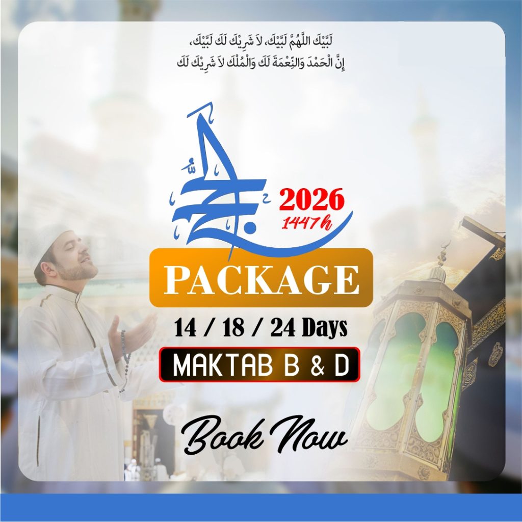 Experience a seamless and spiritually fulfilling journey OF Hajj 2026 with us. We handle all arrangements including Visa, Flights, Accommodations, Transport & Religious guidance, ensuring you focus entirely on your worships.